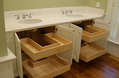 Our bathroom remodel contractors install vanities, improve storage, and increase counter space for a cleaner daily routine.