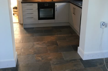 Our contractors install kitchen flooring that handles spills and traffic, supporting long-term performance and easy cleaning.